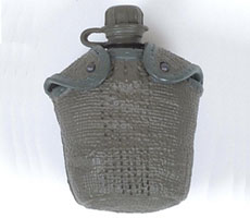 Fallschirmschnüre (um die Knie) grünes Kopftuch, STABO Gurtzeug, Lochkoppel, zwei Feldflaschen, zwei Feldflaschencover als Magazintaschen, Airforce-Survival-Messer mit Scheide,