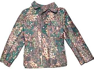 Tarnuniform mit 5 farbigem Punktmuster, welches im Frühling 1944 eingefürt wurde. Die Uniform war aus wendbarem Material und von der anderen Seite bräunlich. Es wurden keine Dienstgrad oder andere Abzeichen an dieser Uniform getragen.