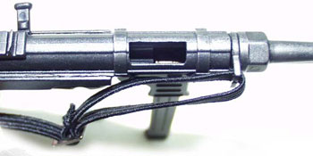 Halstuch, Koppel und 2 MP40 Munitionstaschen. Brotbeutel, Feldküche, Feldflasche und Kartentasche. Die Bewaffnung besteht aus einer MP-40 mit zwei Magazinen und einer Stielhandgranate.